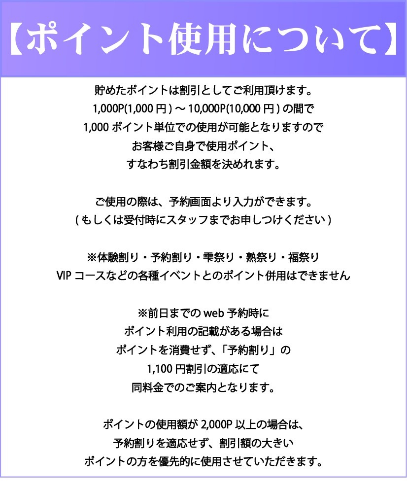 ※なお、 サービス中に発覚した場合、いかなる理由があっても即座にサービスを中止させて頂きます。それ以外であってもキャストの判断によりサービスを中断せざるを得ない場合は、即座にサービスを中断させて頂きます。また、その場合の料金の返金には一切応じません。ご了承下さい。